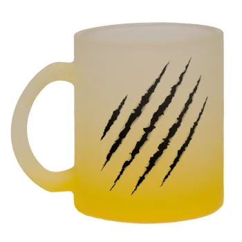 Claw scratch, Κούπα γυάλινη δίχρωμη με βάση το κίτρινο ματ, 330ml