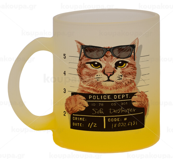 Cat cracked, Κούπα γυάλινη δίχρωμη με βάση το κίτρινο ματ, 330ml