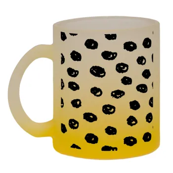 Doodle Dots, Κούπα γυάλινη δίχρωμη με βάση το κίτρινο ματ, 330ml