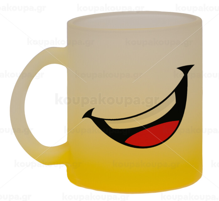Smile!!!, Κούπα γυάλινη δίχρωμη με βάση το κίτρινο ματ, 330ml