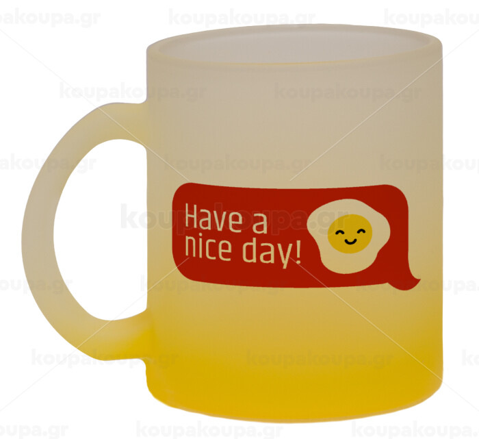 Have a nice day Emoji, Κούπα γυάλινη δίχρωμη με βάση το κίτρινο ματ, 330ml