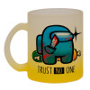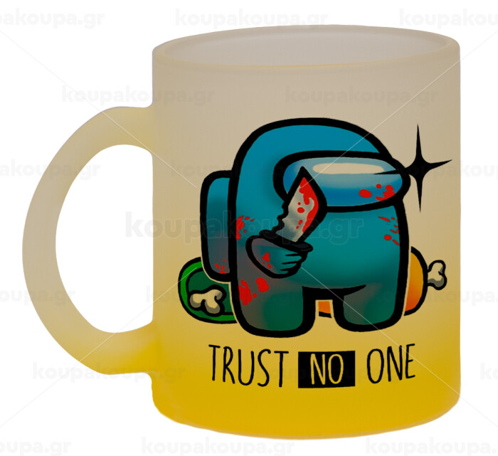 Among Trust no one, Κούπα γυάλινη δίχρωμη με βάση το κίτρινο ματ, 330ml