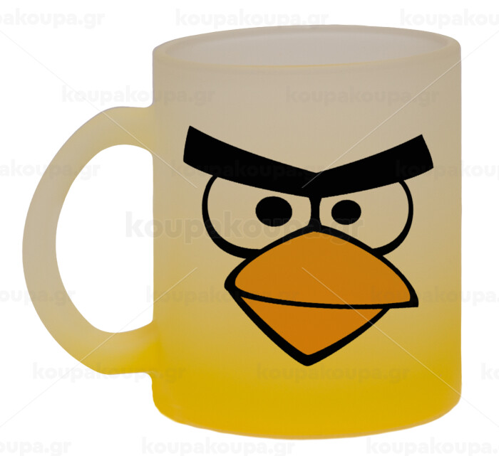 Angry birds eyes, Κούπα γυάλινη δίχρωμη με βάση το κίτρινο ματ, 330ml