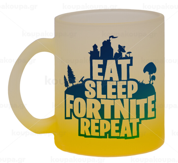 Eat Sleep Fortnite Repeat, Κούπα γυάλινη δίχρωμη με βάση το κίτρινο ματ, 330ml