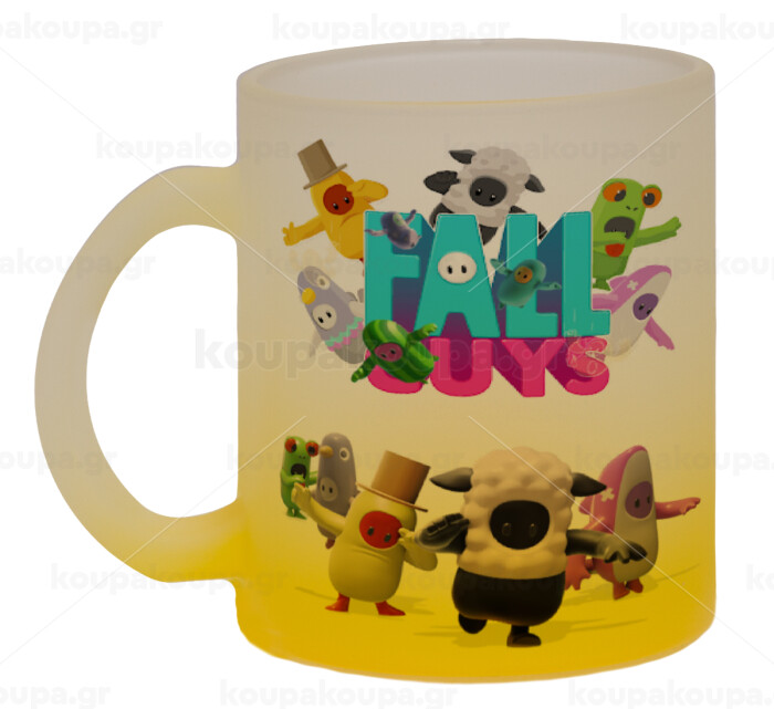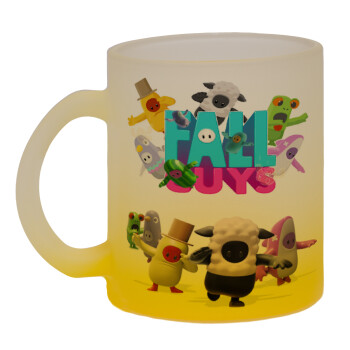 FALL GUYS, Κούπα γυάλινη δίχρωμη με βάση το κίτρινο ματ, 330ml