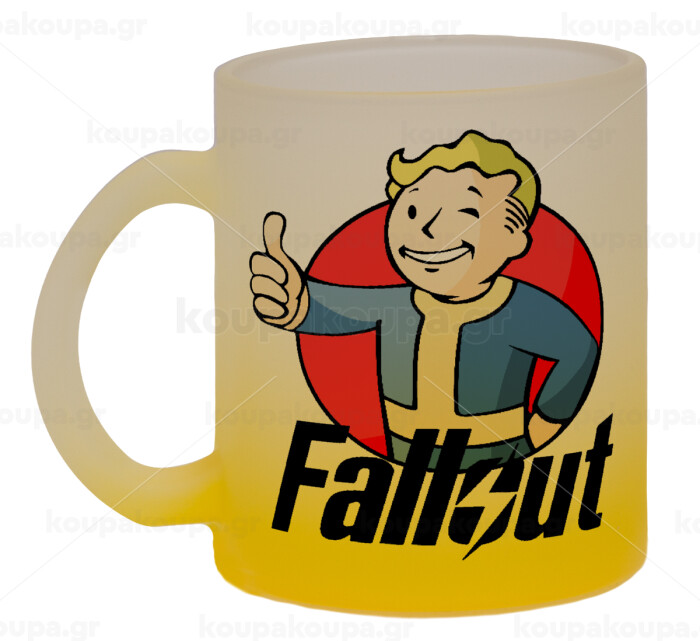 Fallout Vault Boy, Κούπα γυάλινη δίχρωμη με βάση το κίτρινο ματ, 330ml