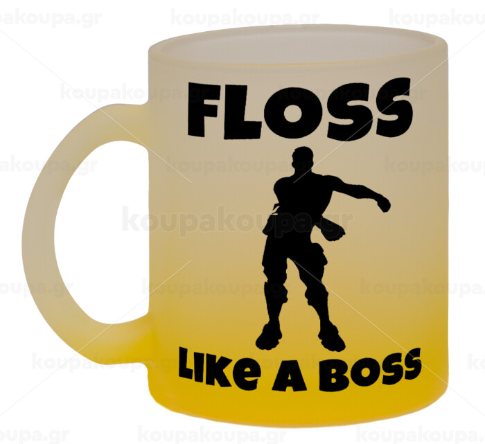 Fortnite Floss Like a Boss, Κούπα γυάλινη δίχρωμη με βάση το κίτρινο ματ, 330ml