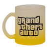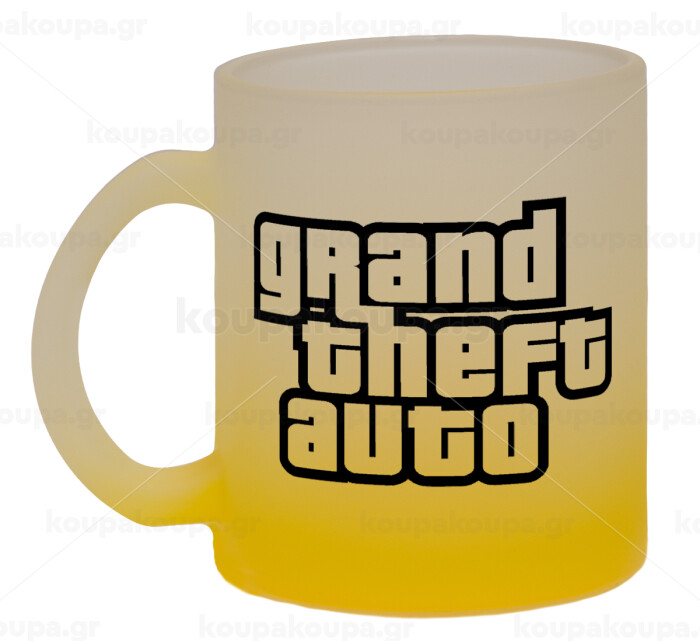 GTA (grand theft auto), Κούπα γυάλινη δίχρωμη με βάση το κίτρινο ματ, 330ml