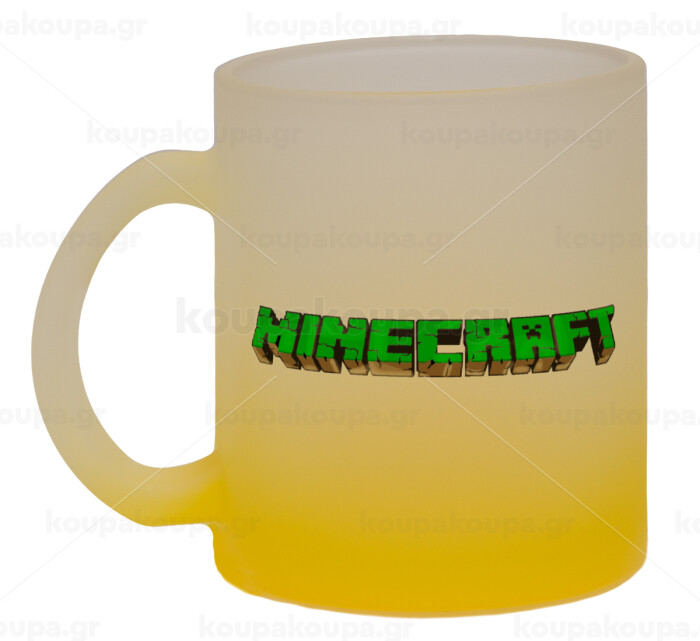 Minecraft logo green, Κούπα γυάλινη δίχρωμη με βάση το κίτρινο ματ, 330ml