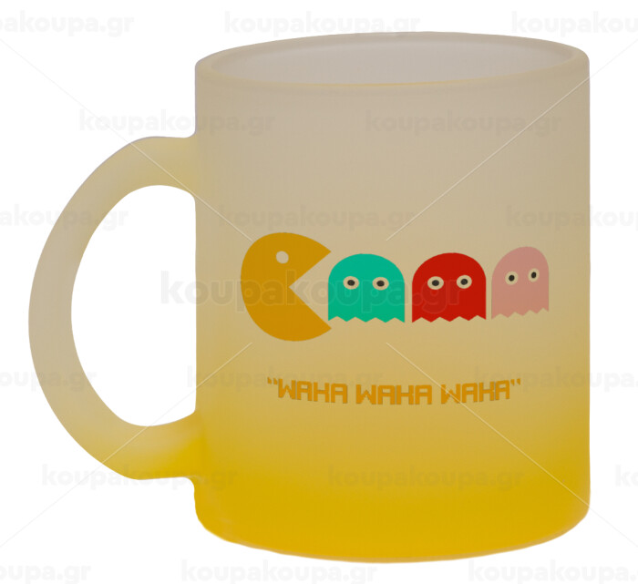 Pacman waka waka waka, Κούπα γυάλινη δίχρωμη με βάση το κίτρινο ματ, 330ml