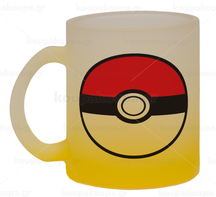 Pokemon ball, Κούπα γυάλινη δίχρωμη με βάση το κίτρινο ματ, 330ml