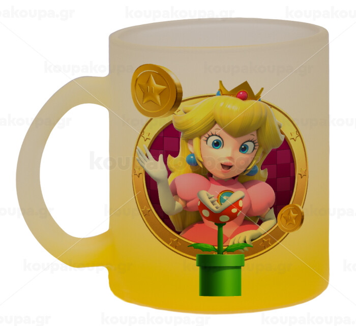 Princess Peach Toadstool, Κούπα γυάλινη δίχρωμη με βάση το κίτρινο ματ, 330ml
