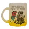 Respect your Elders, Κούπα γυάλινη δίχρωμη με βάση το κίτρινο ματ, 330ml