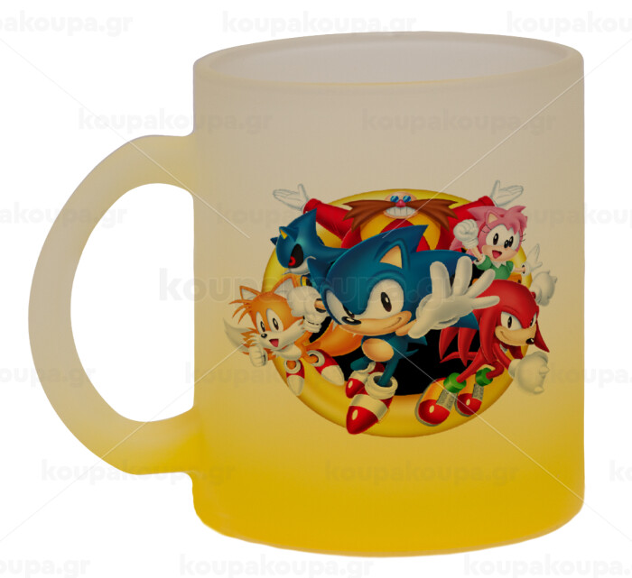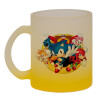 Sonic and friends, Κούπα γυάλινη δίχρωμη με βάση το κίτρινο ματ, 330ml