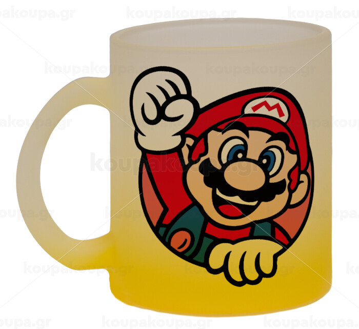 Super mario win, Κούπα γυάλινη δίχρωμη με βάση το κίτρινο ματ, 330ml