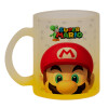 Super mario, Κούπα γυάλινη δίχρωμη με βάση το κίτρινο ματ, 330ml