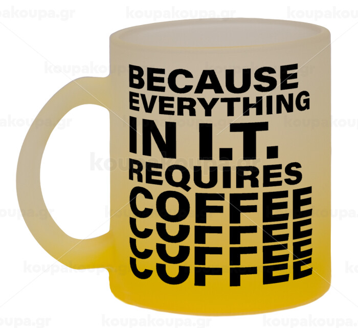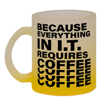 Because everything in I.T. requires coffee, Κούπα γυάλινη δίχρωμη με βάση το κίτρινο ματ, 330ml