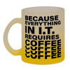 Because everything in I.T. requires coffee, Mug ceramic, gold mirror, 330ml