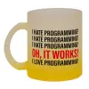 I hate programming!!!, Κούπα γυάλινη δίχρωμη με βάση το κίτρινο ματ, 330ml