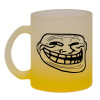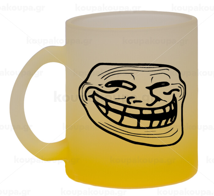Troll face, Κούπα γυάλινη δίχρωμη με βάση το κίτρινο ματ, 330ml