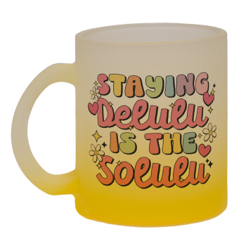 Delulu, Κούπα γυάλινη δίχρωμη με βάση το κίτρινο ματ, 330ml