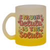 Karma is Only A Bitch if You Are, Κούπα γυάλινη δίχρωμη με βάση το κίτρινο ματ, 330ml