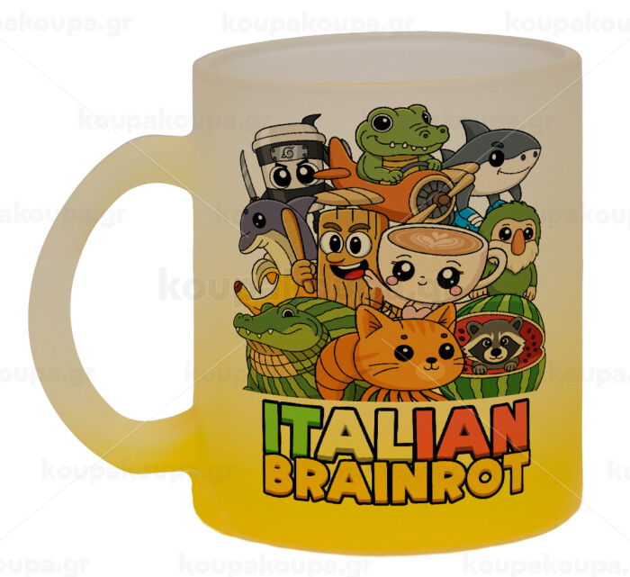 Italian Brainrot, Κούπα γυάλινη δίχρωμη με βάση το κίτρινο ματ, 330ml