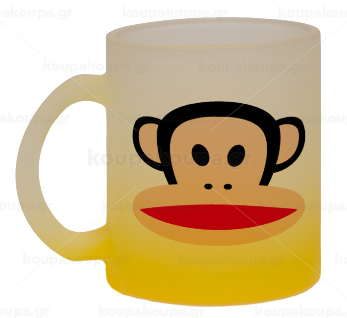 Monkey, Κούπα γυάλινη δίχρωμη με βάση το κίτρινο ματ, 330ml