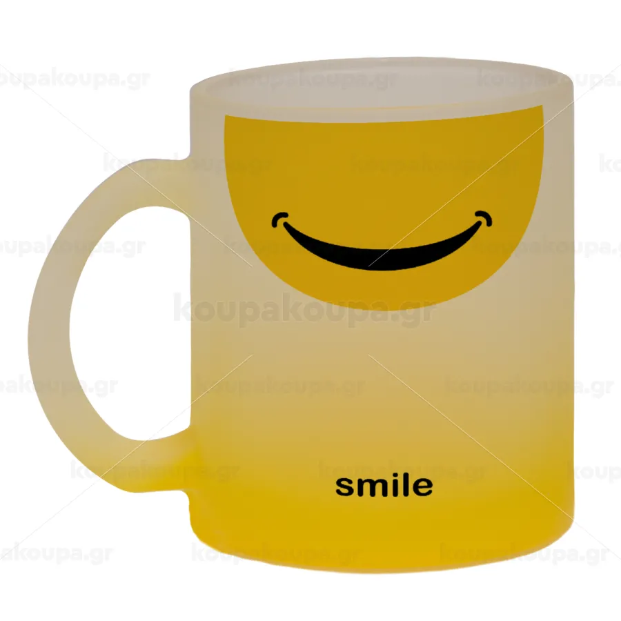 Smile Mug, Κούπα γυάλινη δίχρωμη με βάση το κίτρινο ματ, 330ml