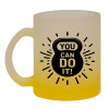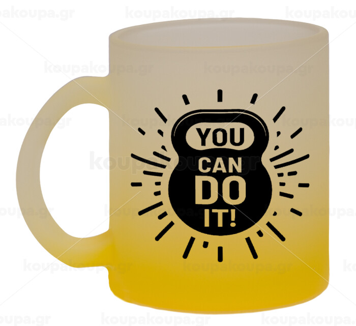 You can do it, Κούπα γυάλινη δίχρωμη με βάση το κίτρινο ματ, 330ml