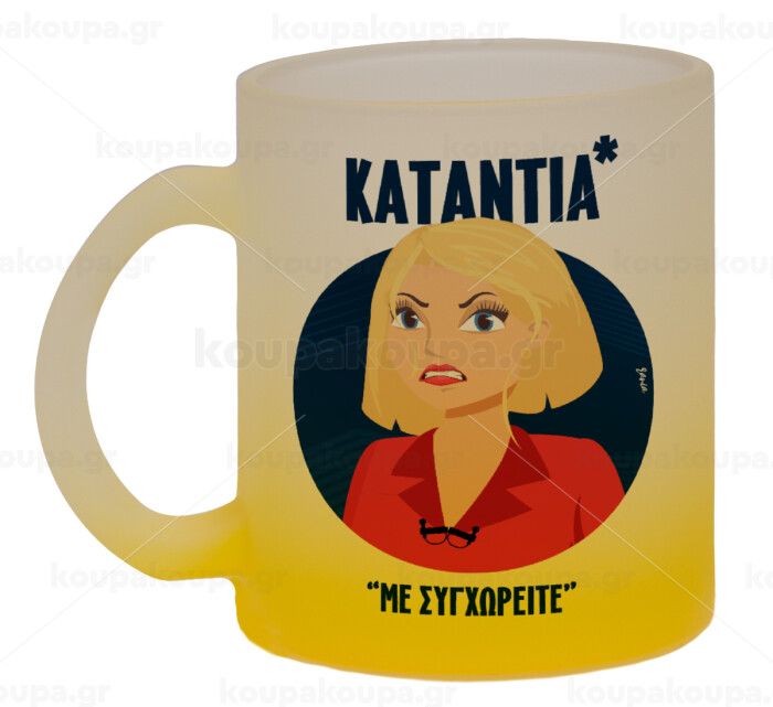 Κατάντια, με συγχωρείτε, Κούπα γυάλινη δίχρωμη με βάση το κίτρινο ματ, 330ml