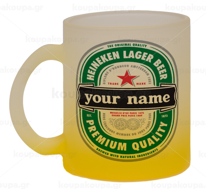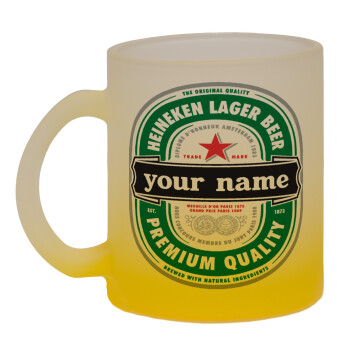 Heineken with name, Κούπα γυάλινη δίχρωμη με βάση το κίτρινο ματ, 330ml
