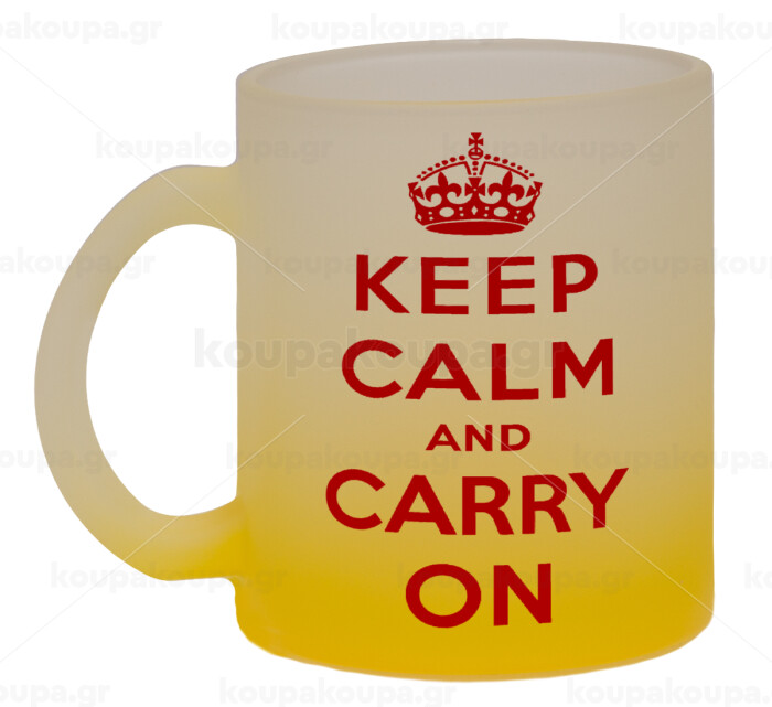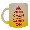 KEEP CALM and carry on, Κούπα γυάλινη δίχρωμη με βάση το κίτρινο ματ, 330ml