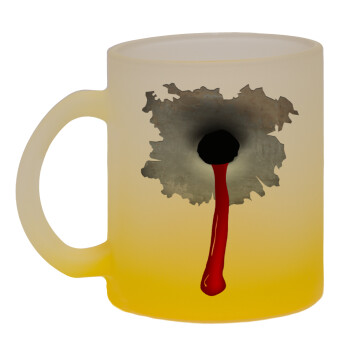 Bullet holes, Κούπα γυάλινη δίχρωμη με βάση το κίτρινο ματ, 330ml