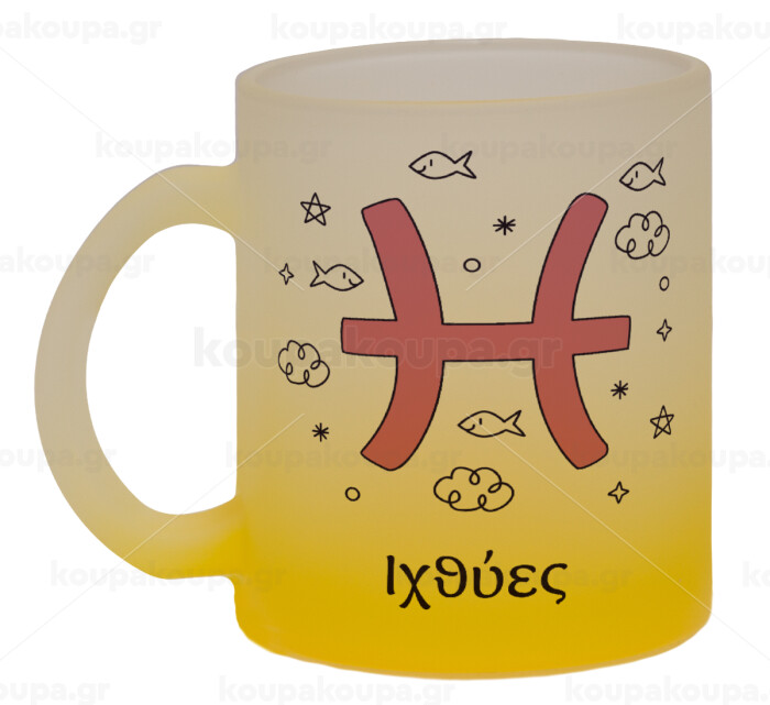 Ζώδια Ιχθύες, Κούπα γυάλινη δίχρωμη με βάση το κίτρινο ματ, 330ml