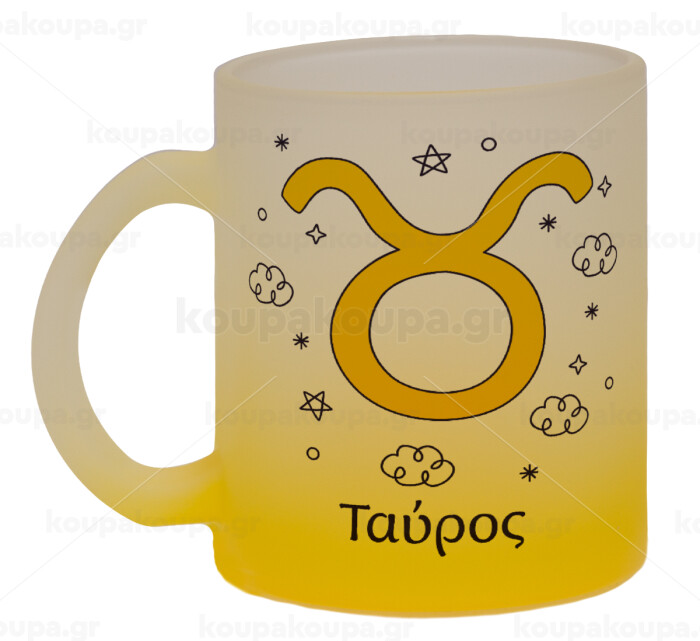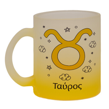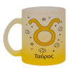 Ζώδια Ταύρος, Κούπα γυάλινη δίχρωμη με βάση το κίτρινο ματ, 330ml
