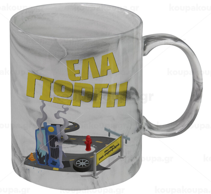 Έλα Γιώργη, πω πω μια στροφάρα, Mug ceramic marble style, 330ml