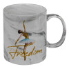 Classic mug marble style of excellent quality with bright colors. Hand wash recommended, microwave safe. Use it for hot and cold drinks.
