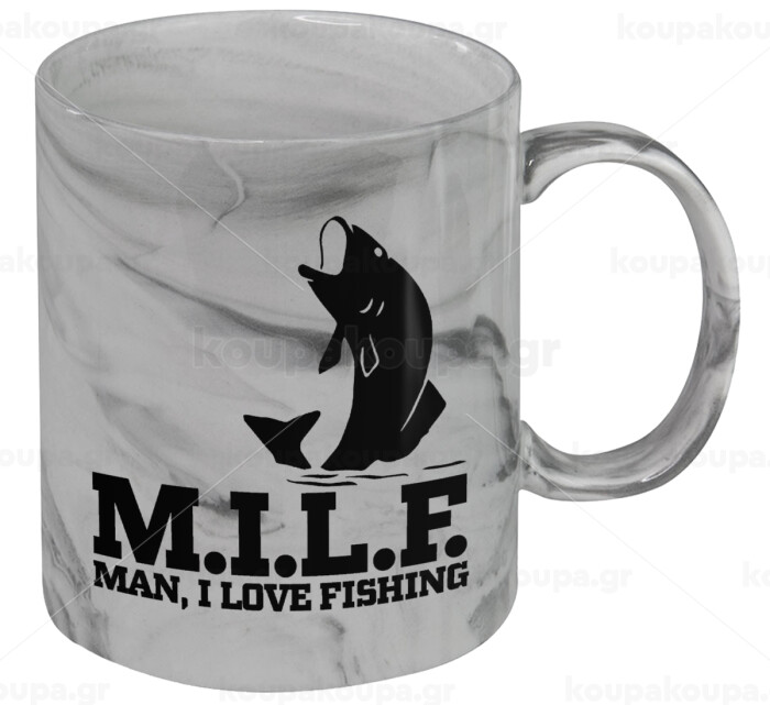 M.I.L.F. Mam i love fishing, Mug ceramic marble style, 330ml