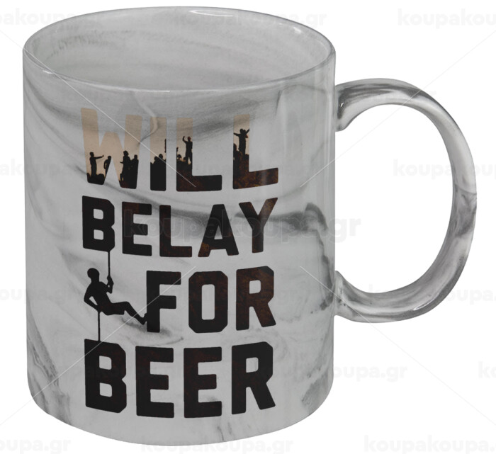 Will Belay For Beer, Mug ceramic marble style, 330ml