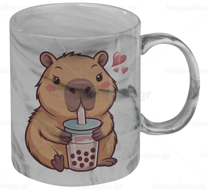 Capybara Bubble Tea, Mug ceramic marble style, 330ml