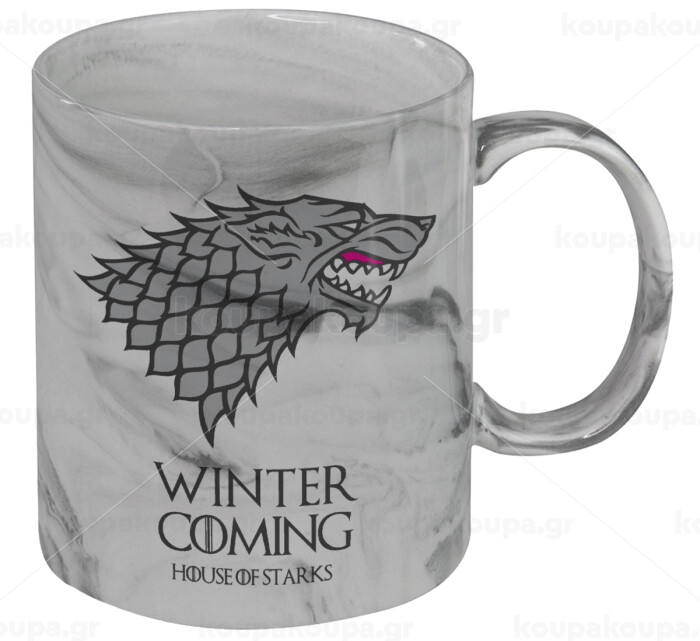 GOT House of Starks, winter coming, Mug ceramic marble style, 330ml