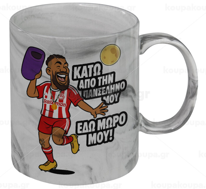 Ροντινέι, "ΚΑΤΩ ΑΠΟ ΤΗΝ ΠΑΝΣΕΛΗΝΟ ΜΟΥ!", Mug ceramic marble style, 330ml