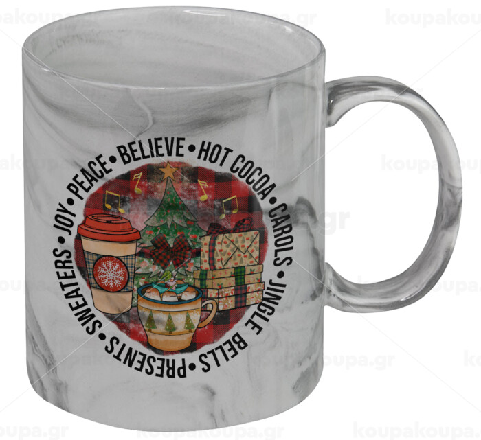 Joy, Peace, Believe, Hot Cocoa, Carols, Mug ceramic marble style, 330ml