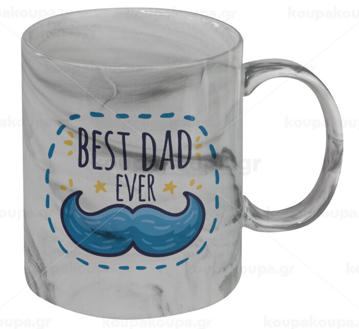 Best dad ever μπλε μουστάκι, Mug ceramic marble style, 330ml