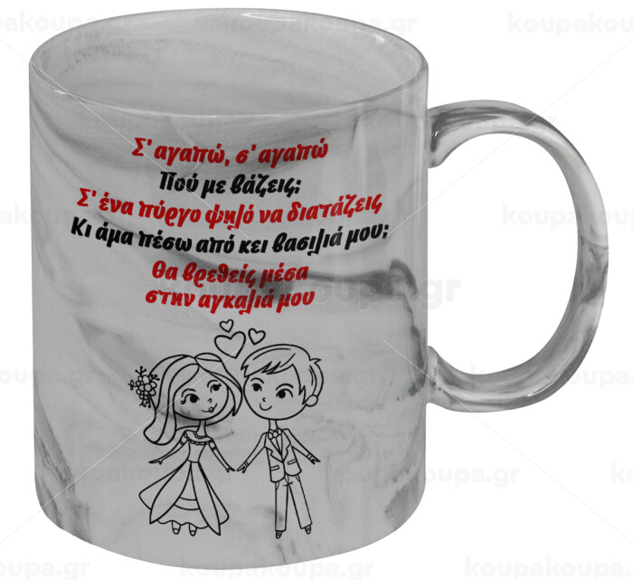 Σ΄ αγαπώ σ΄ αγαπώ που με βάζεις, Mug ceramic marble style, 330ml