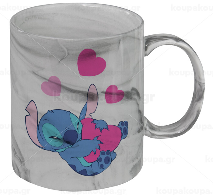 Lilo & Stitch hugs and hearts, Mug ceramic marble style, 330ml