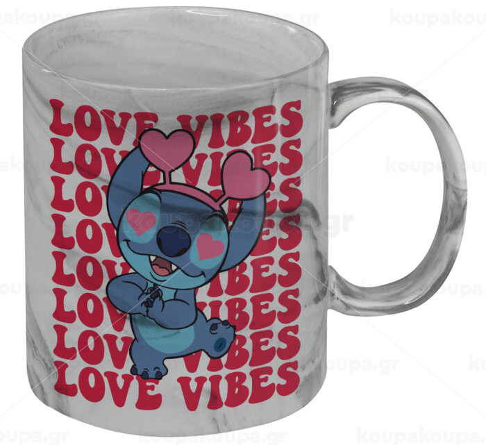 Lilo & Stitch Love vibes, Mug ceramic marble style, 330ml