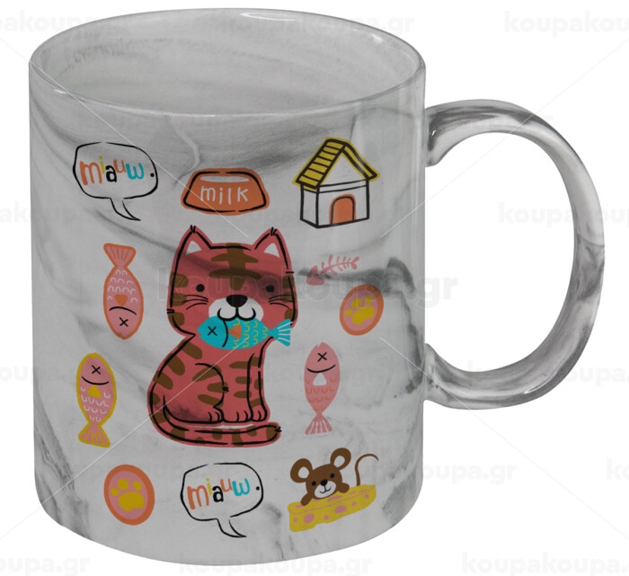 Cats and Fishes, Mug ceramic marble style, 330ml