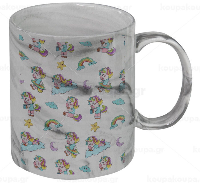 Unicorn pattern, Mug ceramic marble style, 330ml